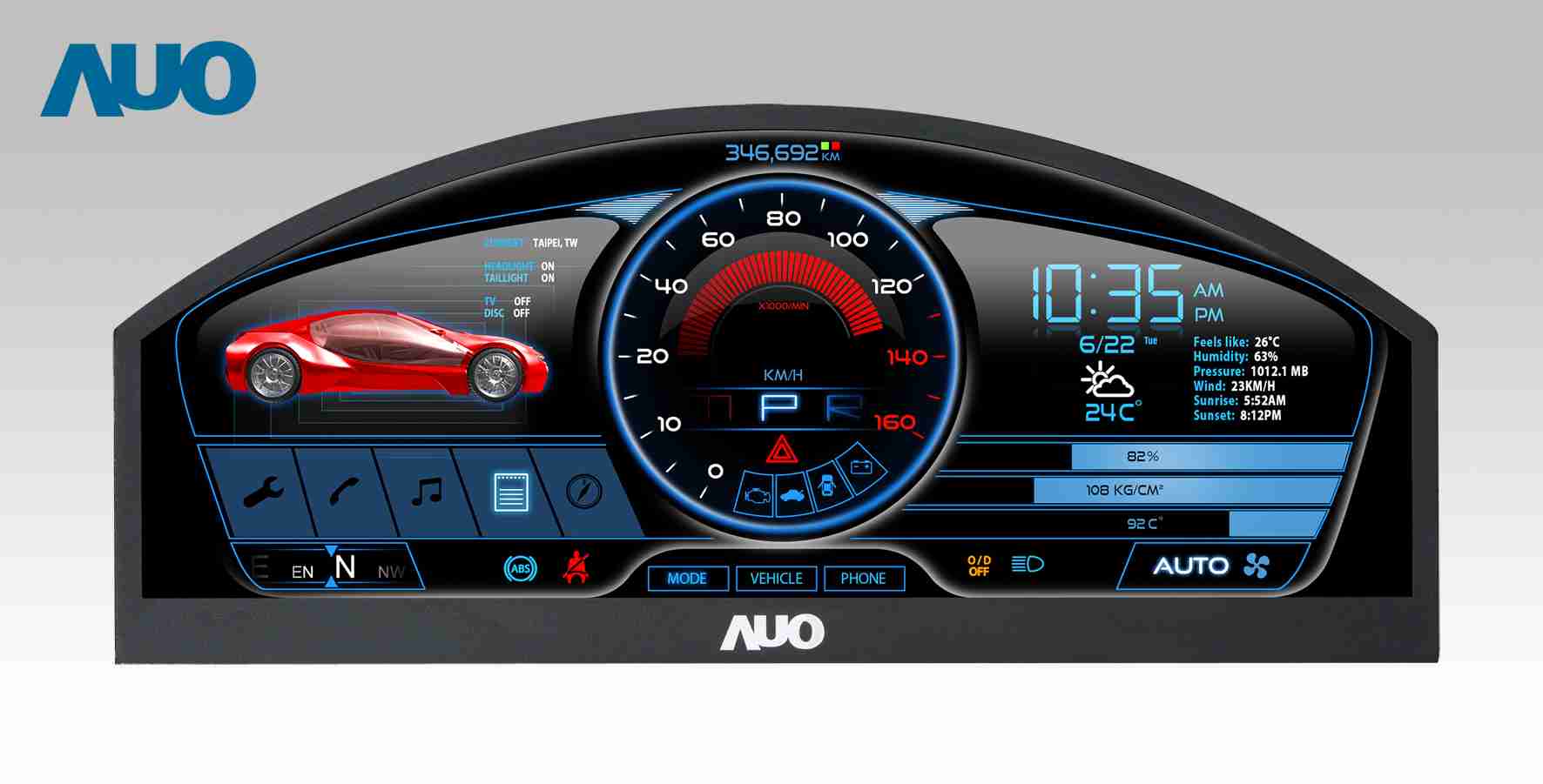 壹号平台 12.3吋超高解析异型切割车用面板,,,,拥有流线外观及精细画质
